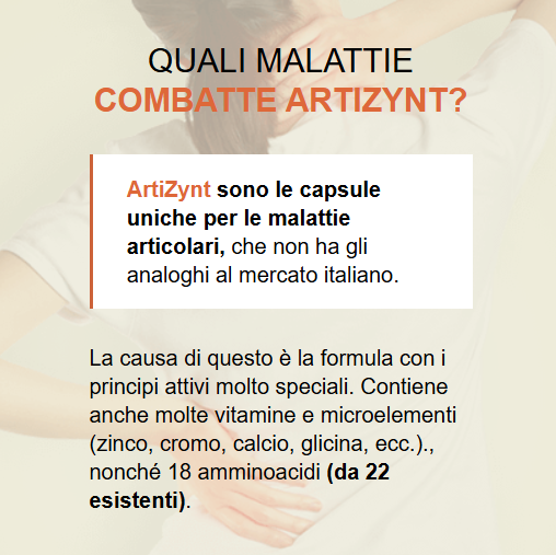 ARTIZYNT è un integratore alimentare pensato per chi desidera dare un supporto quotidiano alle articolazioni e mantenere una buona qualità di vita. Non rappresenta una cura medica, non sostituisce trattamenti prescritti e non offre risultati immediati, ma può essere un valido aiuto all’interno di un percorso che mira al benessere articolare.